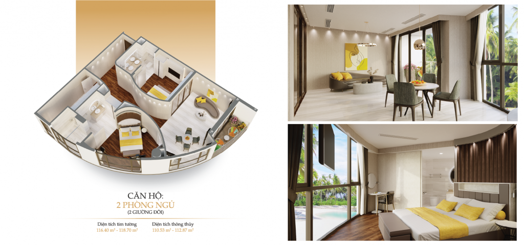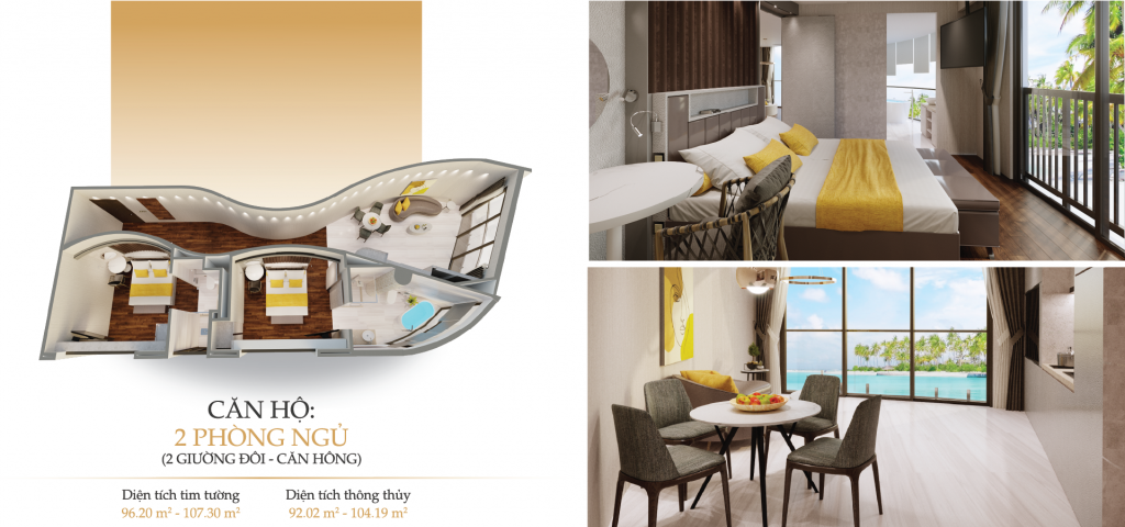 SỐNG HIỆN ĐẠI với loạt công nghệ tiên tiến ứng dụng trong nội thất: Khóa cửa thông minh, hỗ trợ check-in bằng bluetooth đảm bảo an toàn và riêng tư tuyệt đối; kính Low-E ? lớp vừa giúp cách âm, cách nhiệt vừa giúp mở rộng không gian, cho cư dân thưởng trọn view biển mỗi ngày; NGHỈ DƯỠNG TRỌN VẸN với loạt tiện ích nội khu đẳng cấp chờ đợi ngay thềm cửa, đưa cư dân bước vào chuỗi trải nghiệm đong đầy cảm xúc: sôi động cùng loạt trò chơi cảm giác mạnh trên biển, thư giãn thân – tâm – trí trong phòng gym – yoga – xông hơi; “du lịch” ? châu cùng hệ thống nhà hàng từ Á đến Âu sang trọng,…